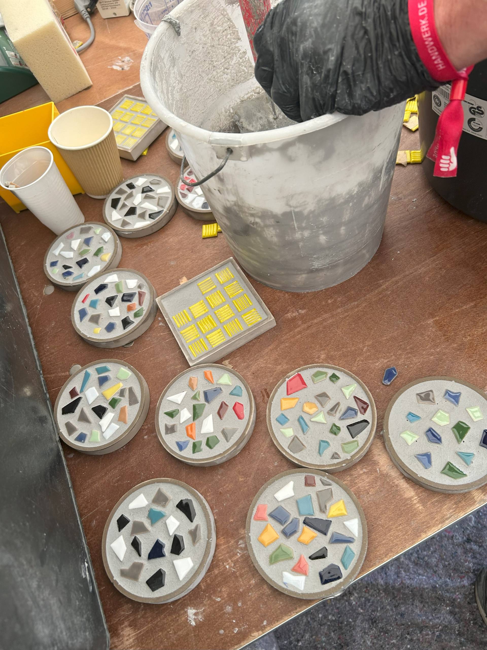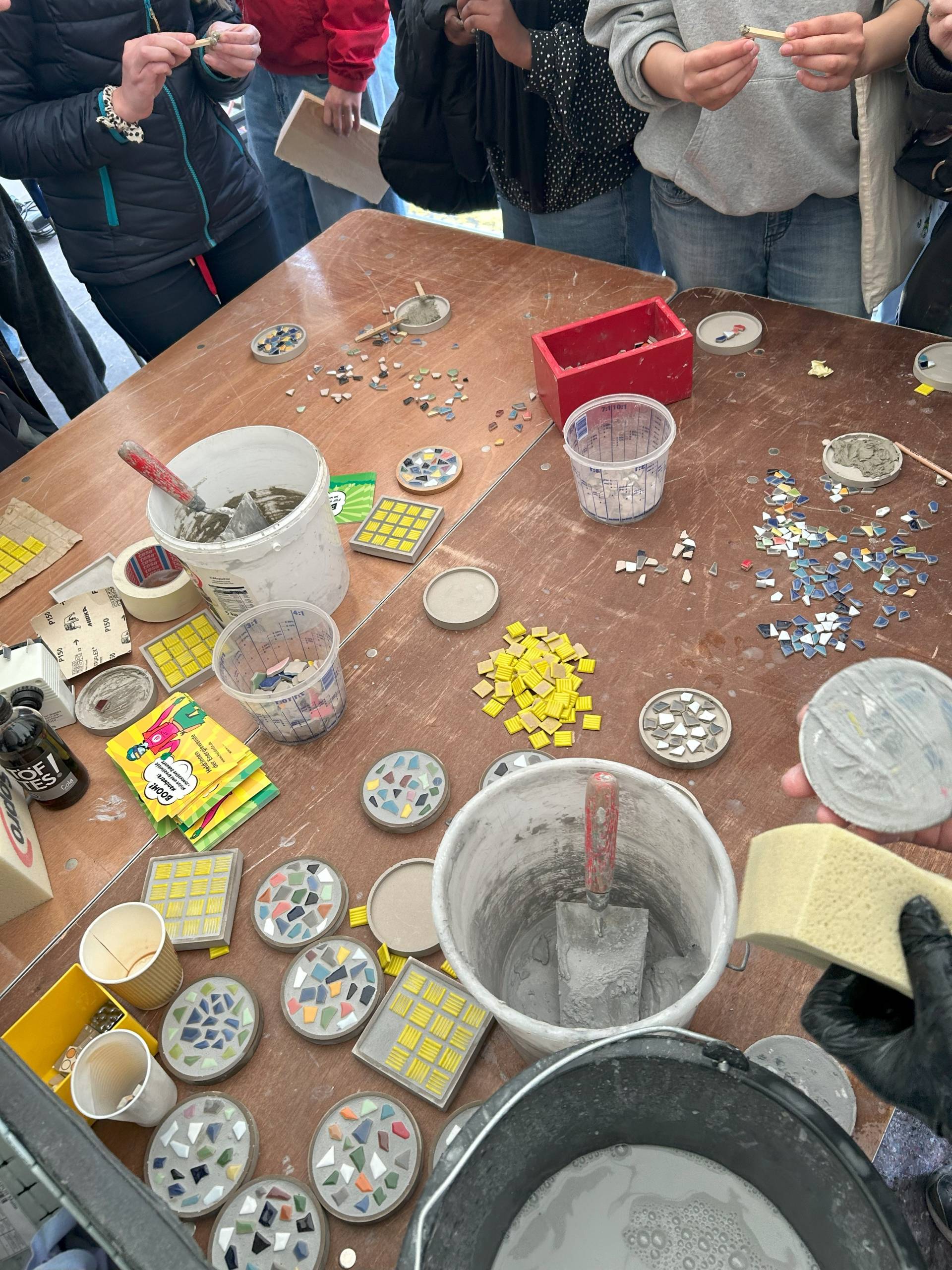 Kreativ mit Mosaik – Aus Spachtelmasse und bunten Fliesen gestalteten die Teilnehmenden individuelle Untersetzer und entdeckten dabei das gestalterische Potenzial handwerklicher Arbeit.