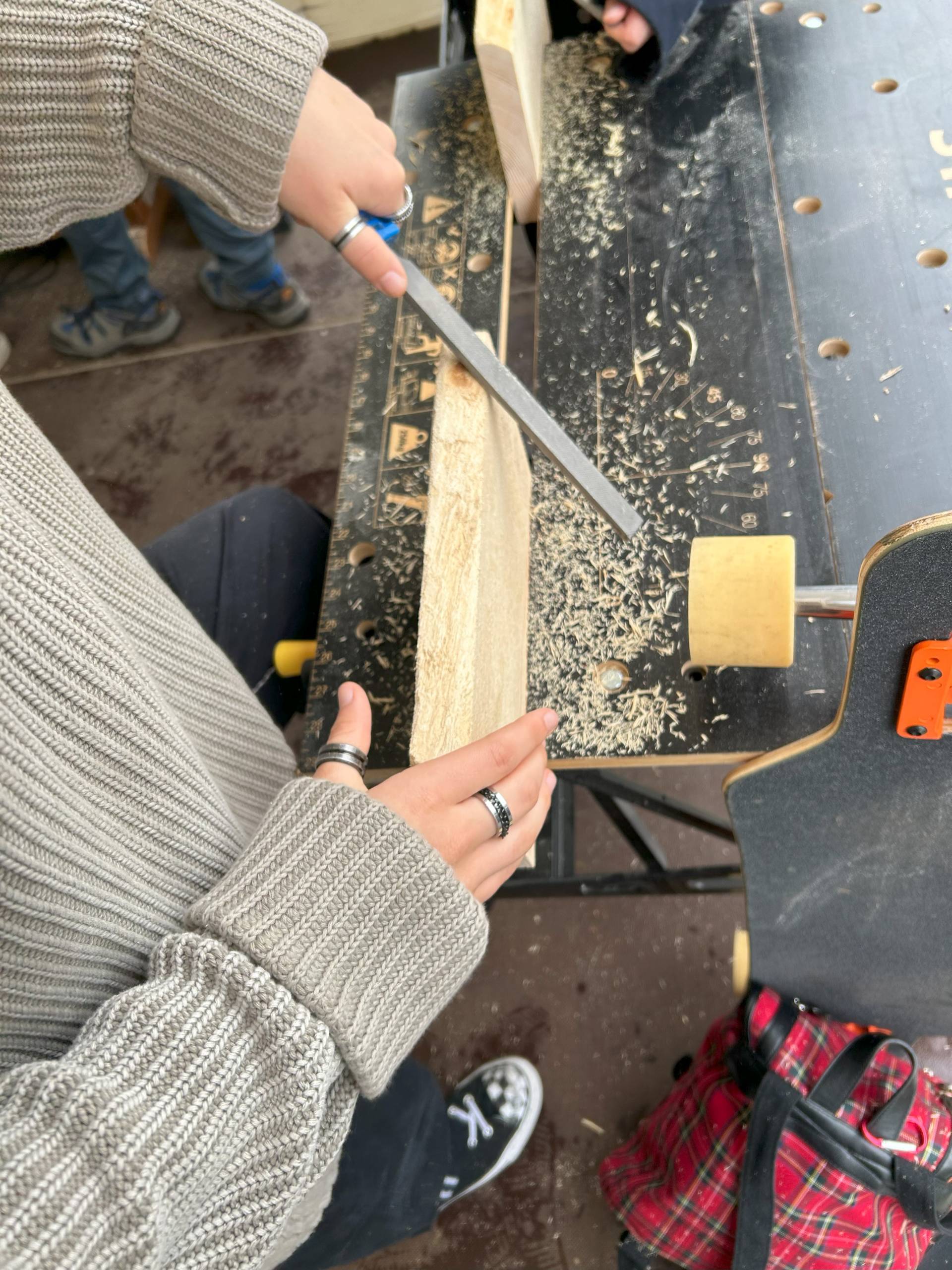 Holz trifft Handwerk – Beim Herstellen eines Frühstücksbrettchens aus Holz lernten die Schüler:innen das Raspeln, Feilen und Schleifen direkt in der Praxis kennen.